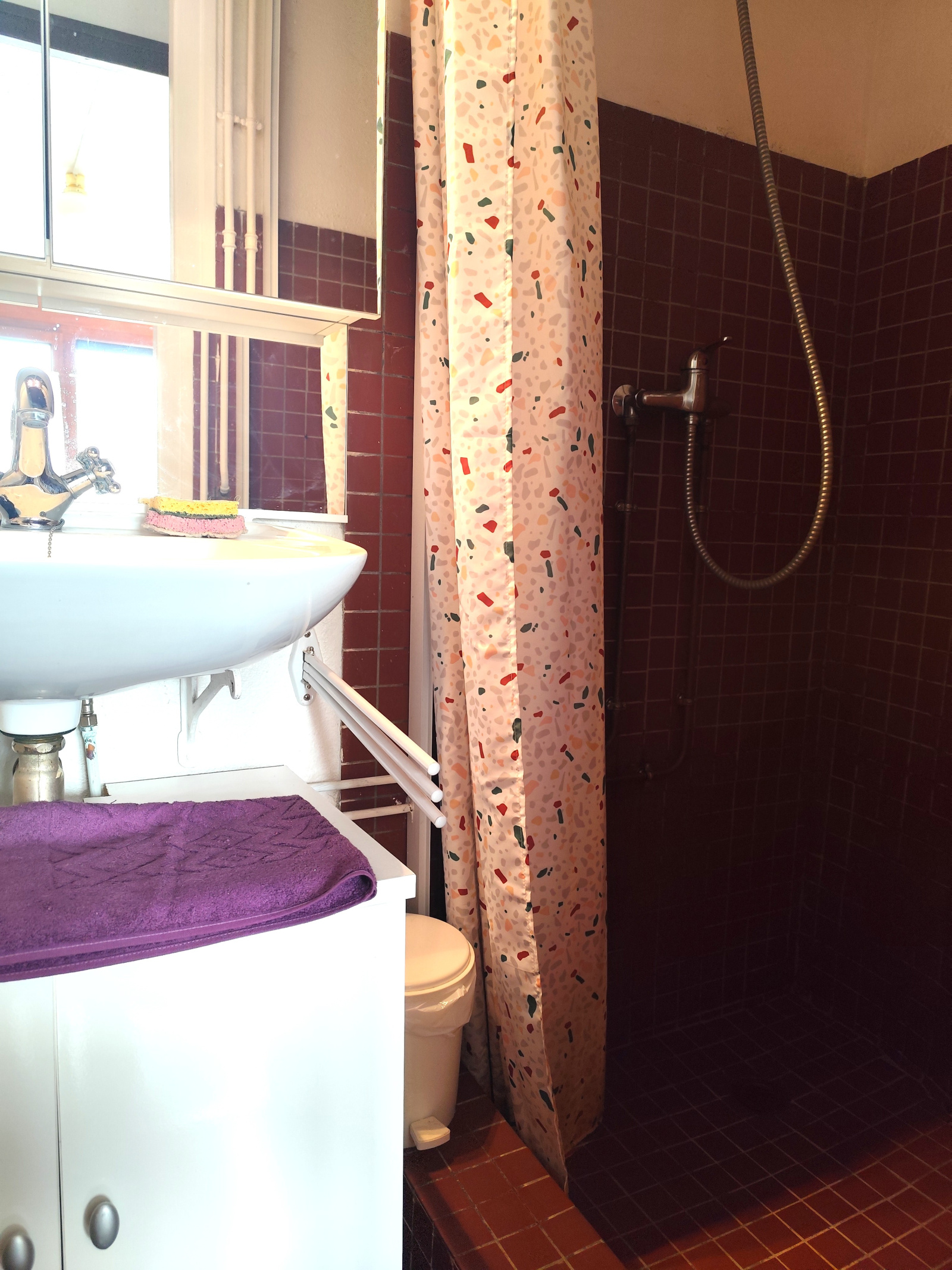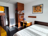 À l’étage inférieur, une chambre confortable avec accès direct à la cour, une salle d’eau et un WC indépendant complètent l’ensemble. Les charges annuelles comprennent l'électricité, le chauffage, eau froide eau chaude, gardien et frais syndic s'èlèvent à 1722 € .