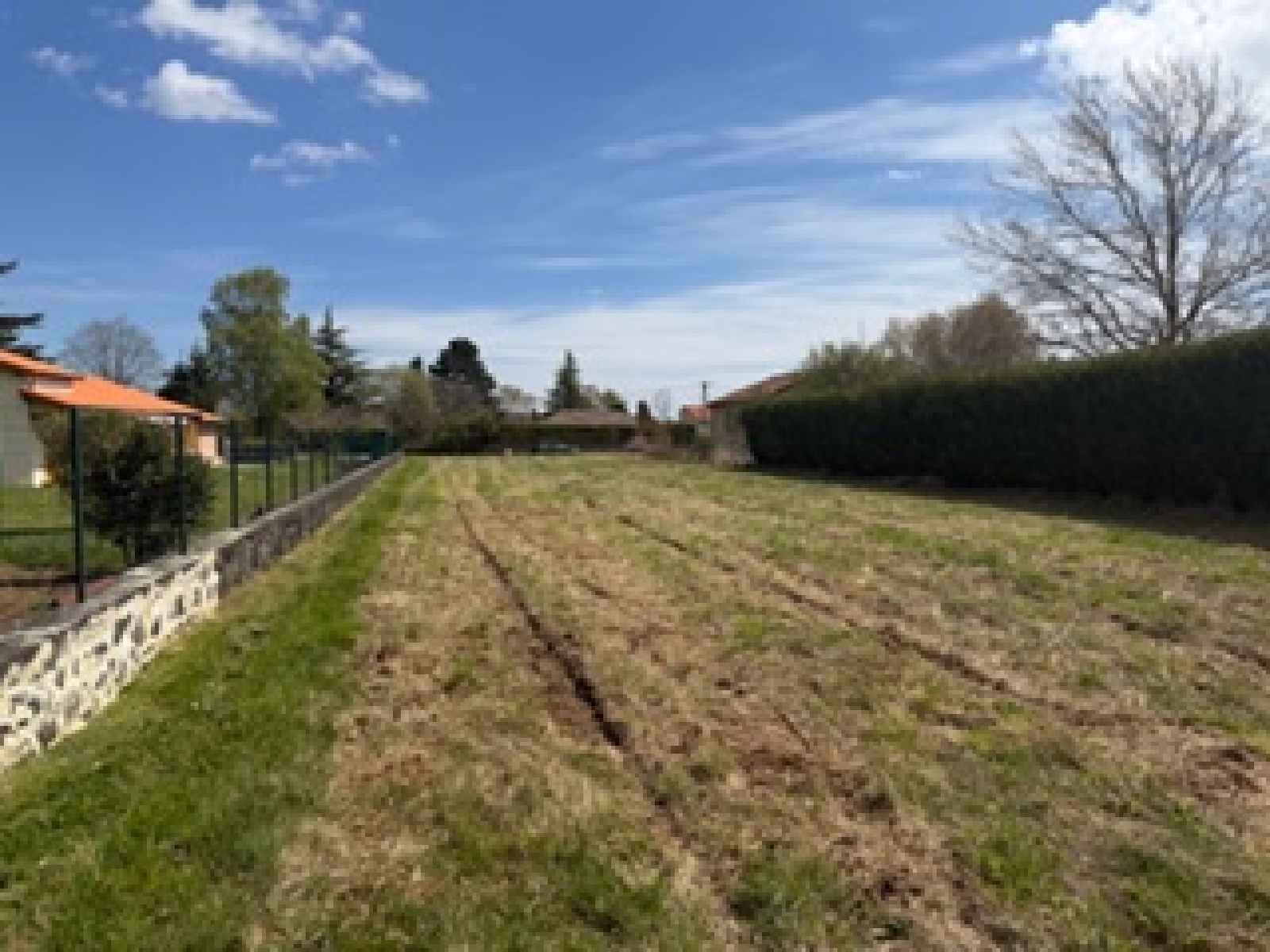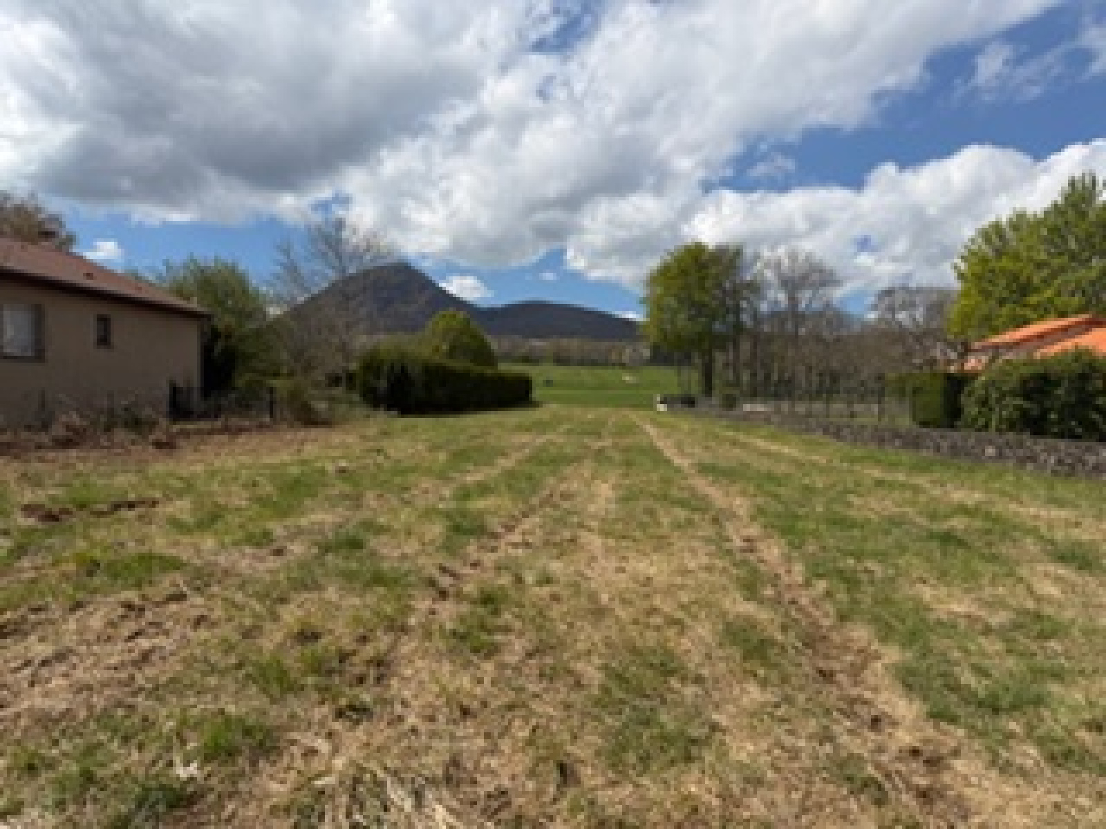 Orcines, terrain plat de 1263 m2 , clos et dégagé, viabilité en bordure du terrain, partie constructible de 771 m2 pour projet de construction.