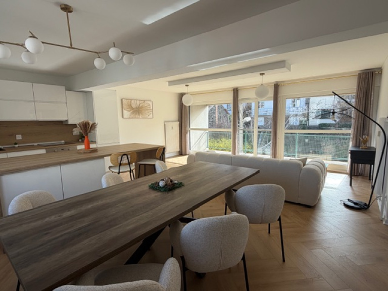 CHAMALIERES, en plein coeur de la ville et proche des commodités, cet appartement vous séduira par son balcon-terrasse plein sud, cette grande pièce de vie de plus de 41 m2, ses 3 chambres, son garage, sa cave et son balcon au nord. il sera livré meublé comme sur les photos, idéal pour colocation ou famille...DPE D car fenêtres double vitrage neuves ce qui entrainera une baisse des charges concernant le chauffage. Anciennement DPE E soit 4000€/an pour l'instant. la taxe foncière est de 1711€/an. A voir absolument car propre et bien placé.La cuisine est aménagée et équipée, les volets roulants de la pièce de vie sont roulants et le reste en persiennes.. 3 chambres dont une avec son propre balcon.